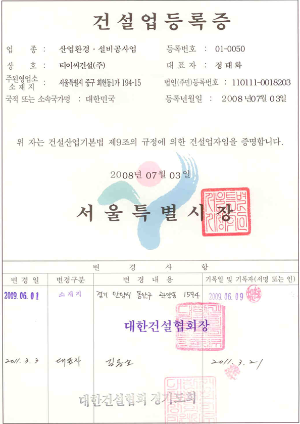 업종 : 토목건축공사업